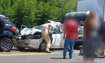 Vítima fica presa nas ferragens após engavetamento na BR-476 em União da Vitória