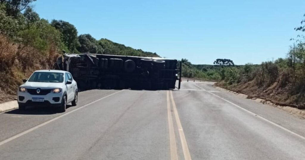 Caminhão tomba na PR-364 e mobiliza equipes de resgate em São Mateus do Sul