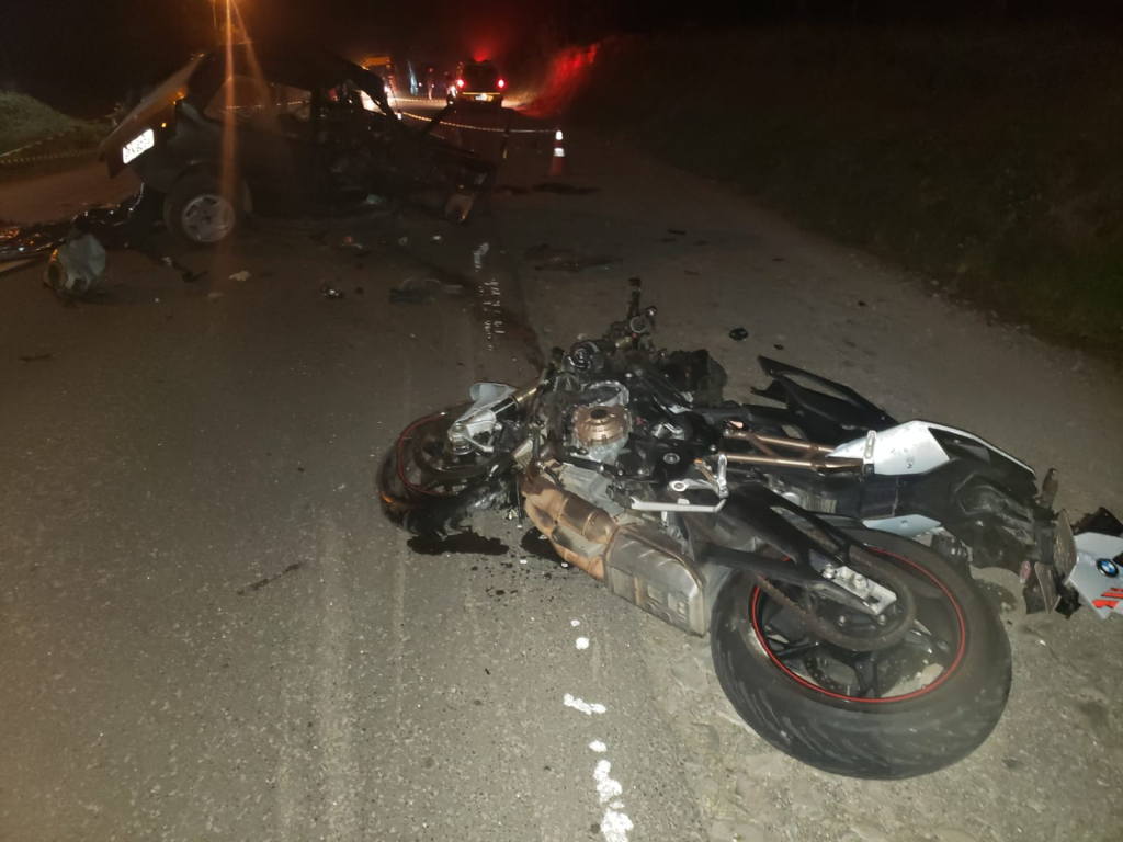 Um trágico acidente foi registrado no final da tarde desta quinta-feira (1º), na BR-153, em Mallet, nas proximidades do Km 387, em frente à entrada de uma cooperativa. A colisão envolveu um veículo Fiat Uno, com placas de Mallet, e uma motocicleta da marca BMW.