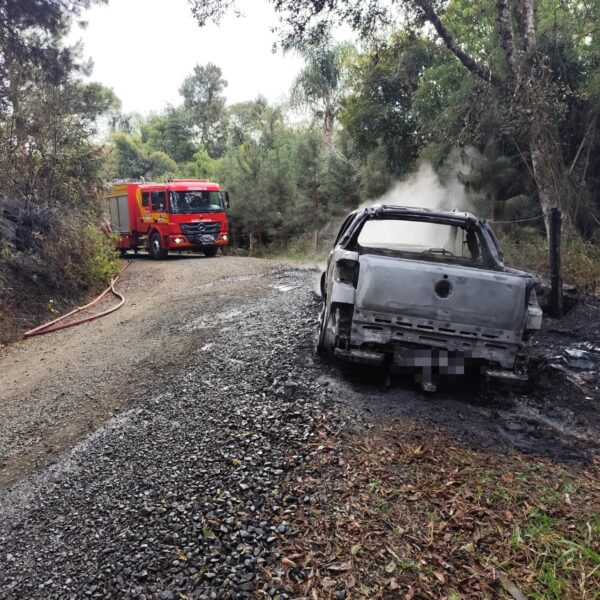 Incêndio destrói veículo em estrada rural de Porto União