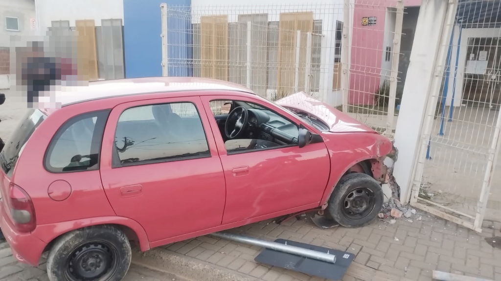 Uma condutora perdeu o controle da direção do seu veículo Corsa, que atingiu a mureta e a grade de proteção do Centro Municipal de Educação Infantil (CMEI) Professor José Maria Orreda, no Conjunto Joaquim Zarpellon, em Irati, na tarde de domingo.