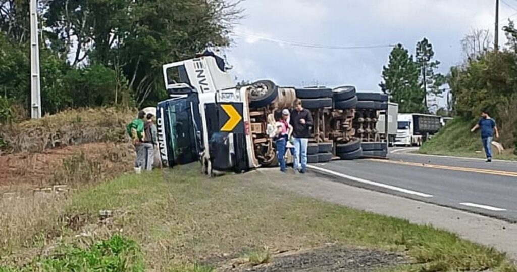 Caminhão tomba na PR-151 entre São Mateus do Sul e São João do Triunfo
