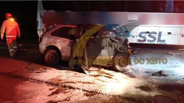 Acidente entre ônibus e carro deixa motorista morto na BR-476