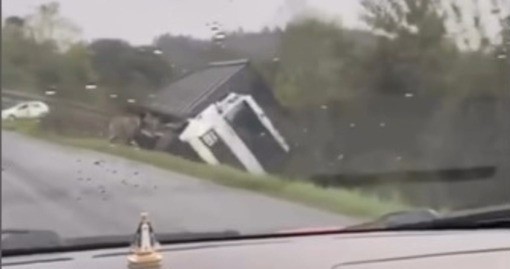 Caminhão sai da pista na BR-476 em Paulo Frontin