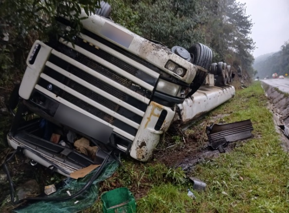Caminhão carregado com óleo vegetal tomba na BR-153