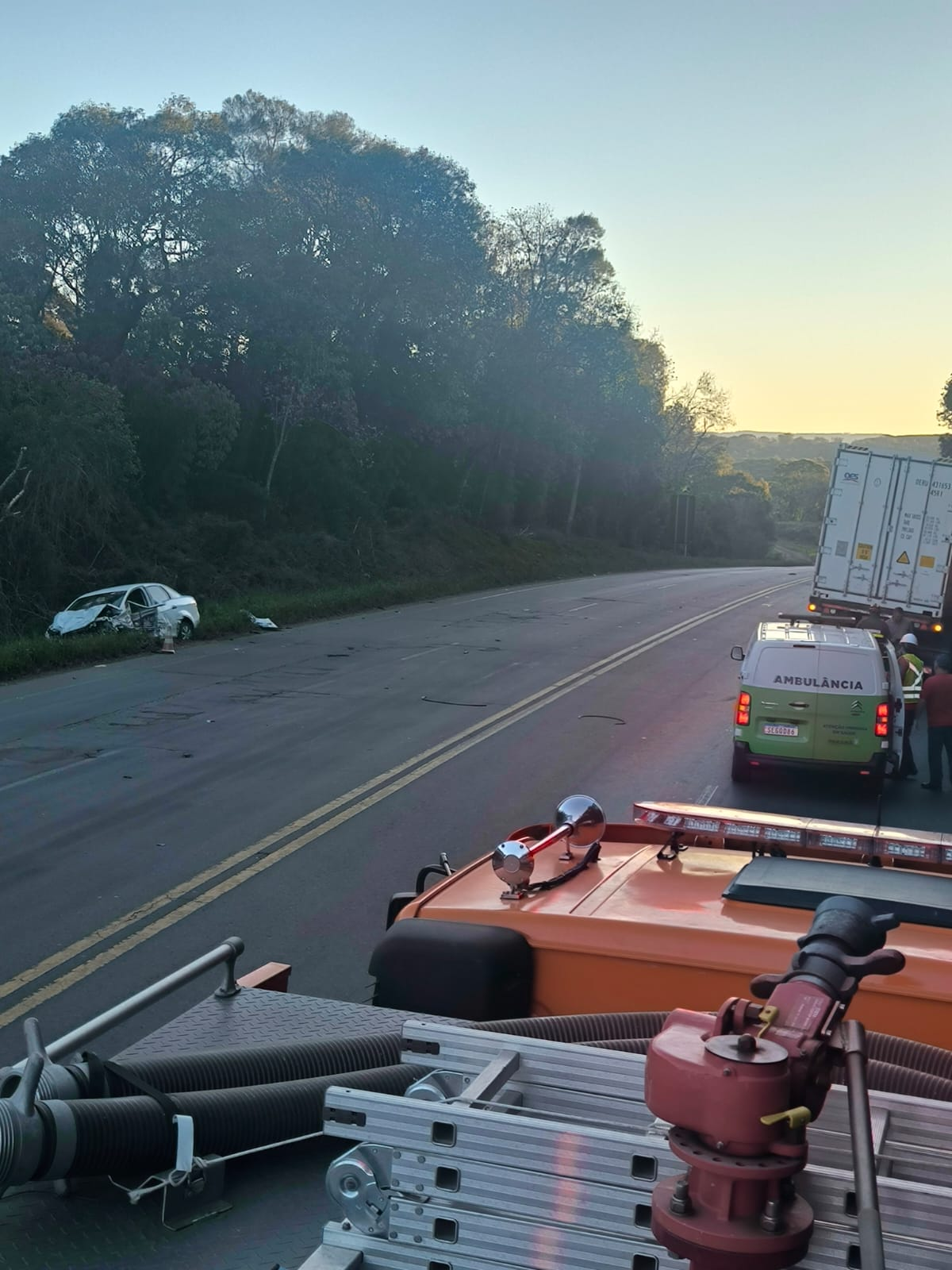 Um acidente foi registrado na rodovia BR-153, em General Carneiro, próximo ao KM 508. A colisão envolveu um caminhão e um carro, mobilizando equipes de resgate por volta das 17h30min dessa quarta-feira (24).