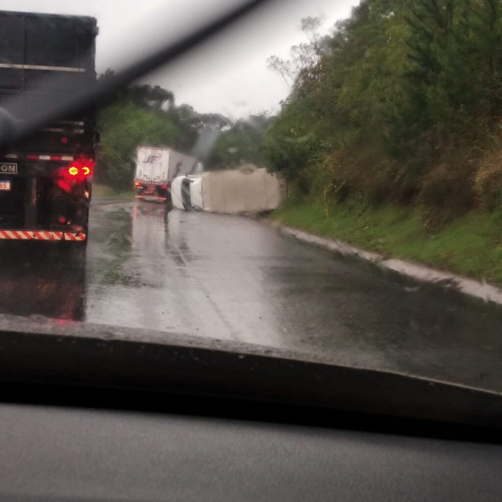 ATUALIZAÇÃO! Caminhão tomba na região do Limoeiro na BR-476 em Paulo Frontin