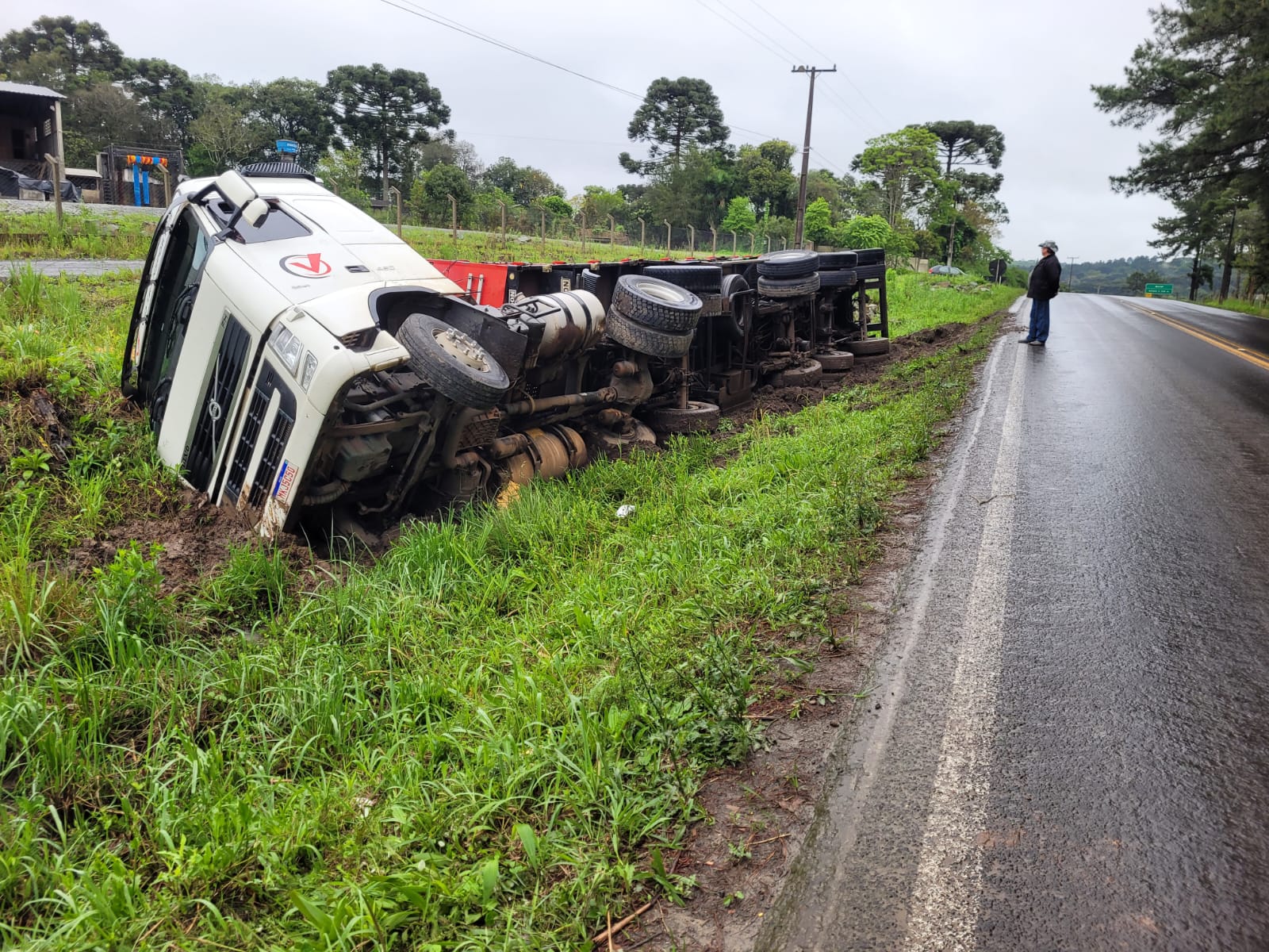 Por volta das 06h05, uma carreta Volvo, carregada com milho e emplacada na cidade de Videira (SC), seguia sentido a Paulo Frontin quando, ao iniciar uma descida, o rodado saiu da pista, fazendo com que o veículo tombasse às margens da rodovia.