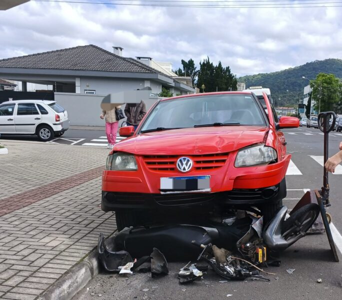 Acidente envolve três carros e uma moto no centro de União da Vitória