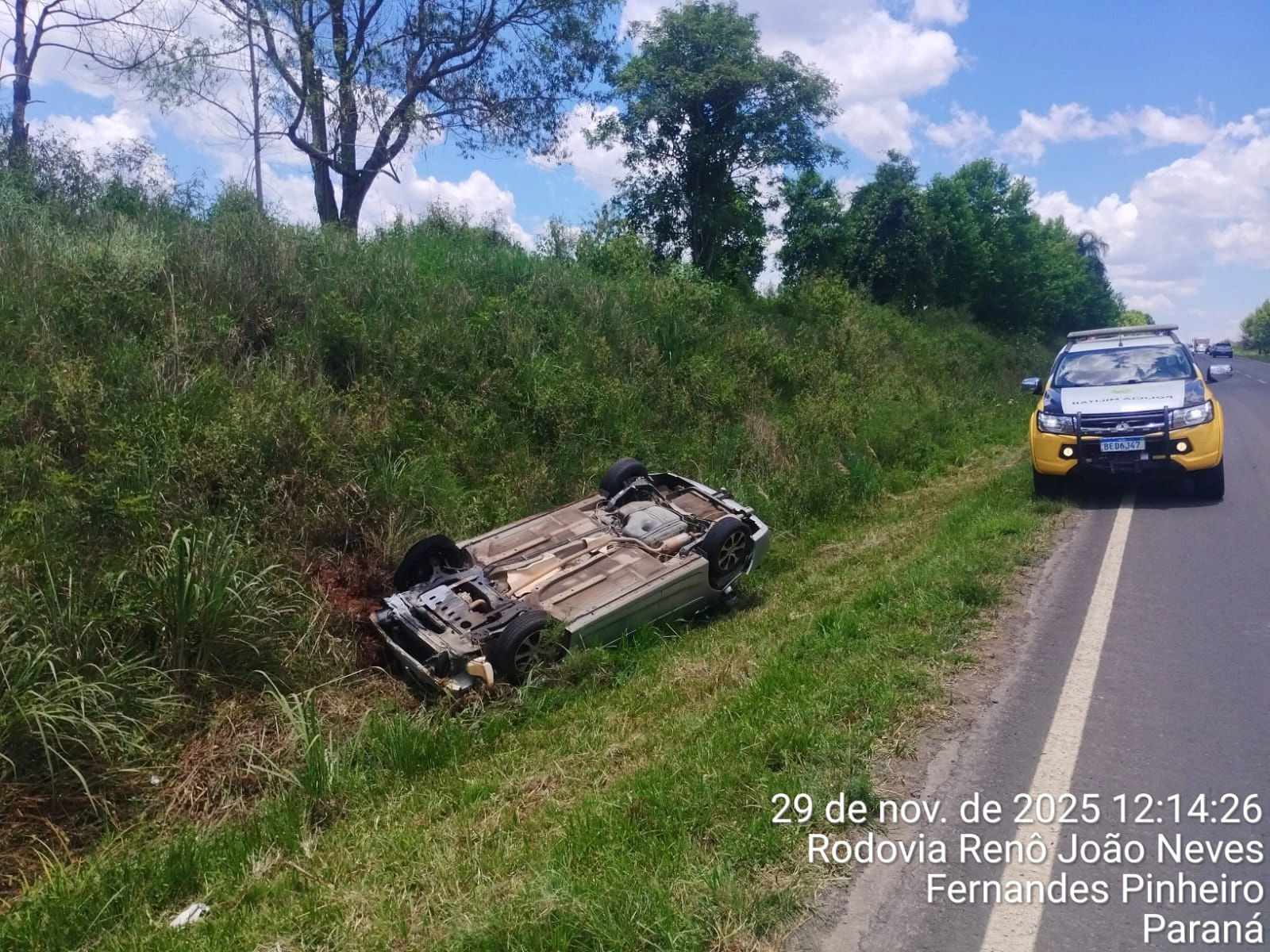 Veículo com placas de Rebouças sobre capotamento em Fernandes Pinheiro