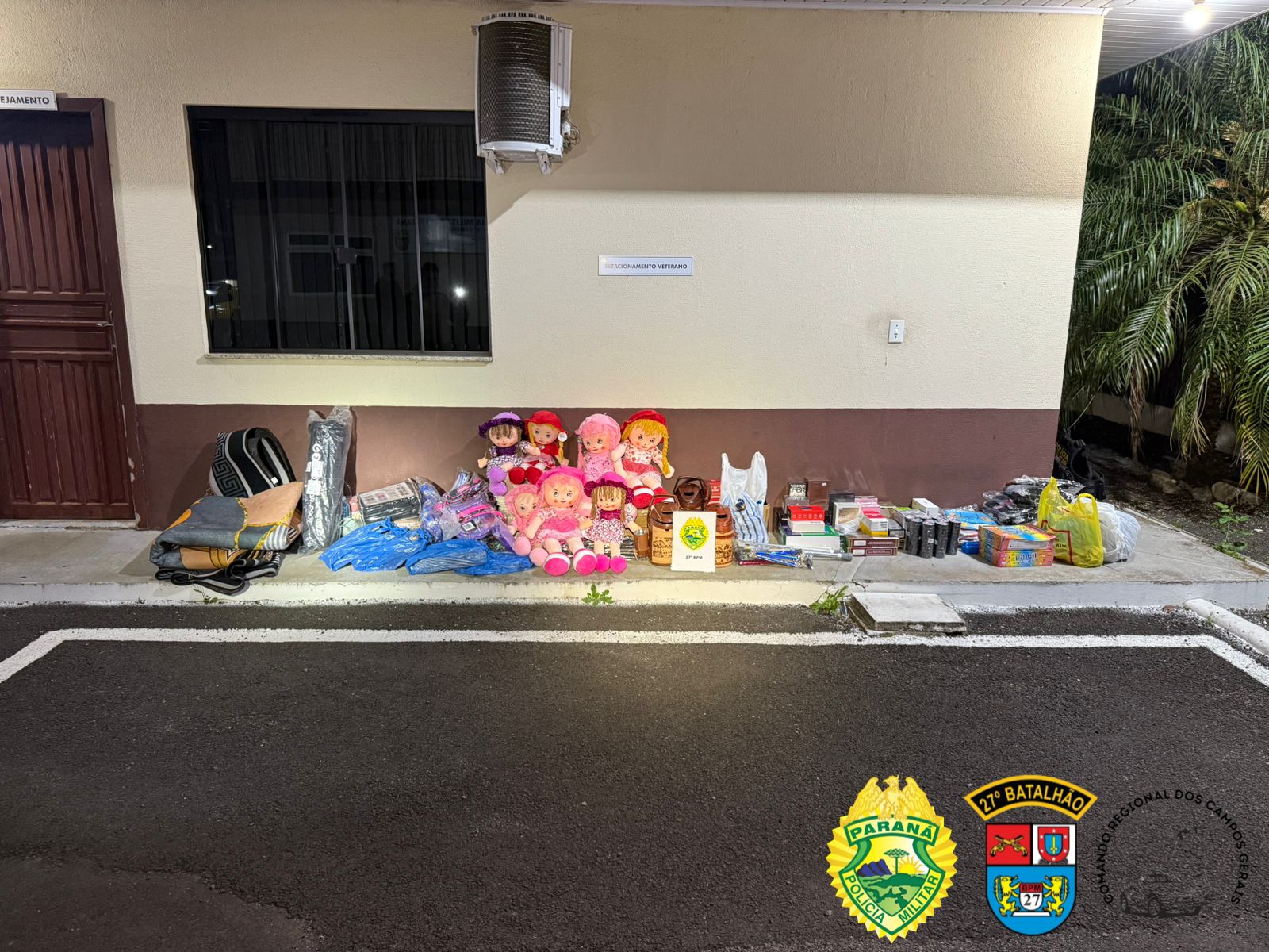 Com os indivíduos nada de ilícito fora encontrado, entretanto no interior do veículo foi constatado estarem transportando diversos produtos entre eletrônicos, bebidas, roupas, brinquedos, etc.