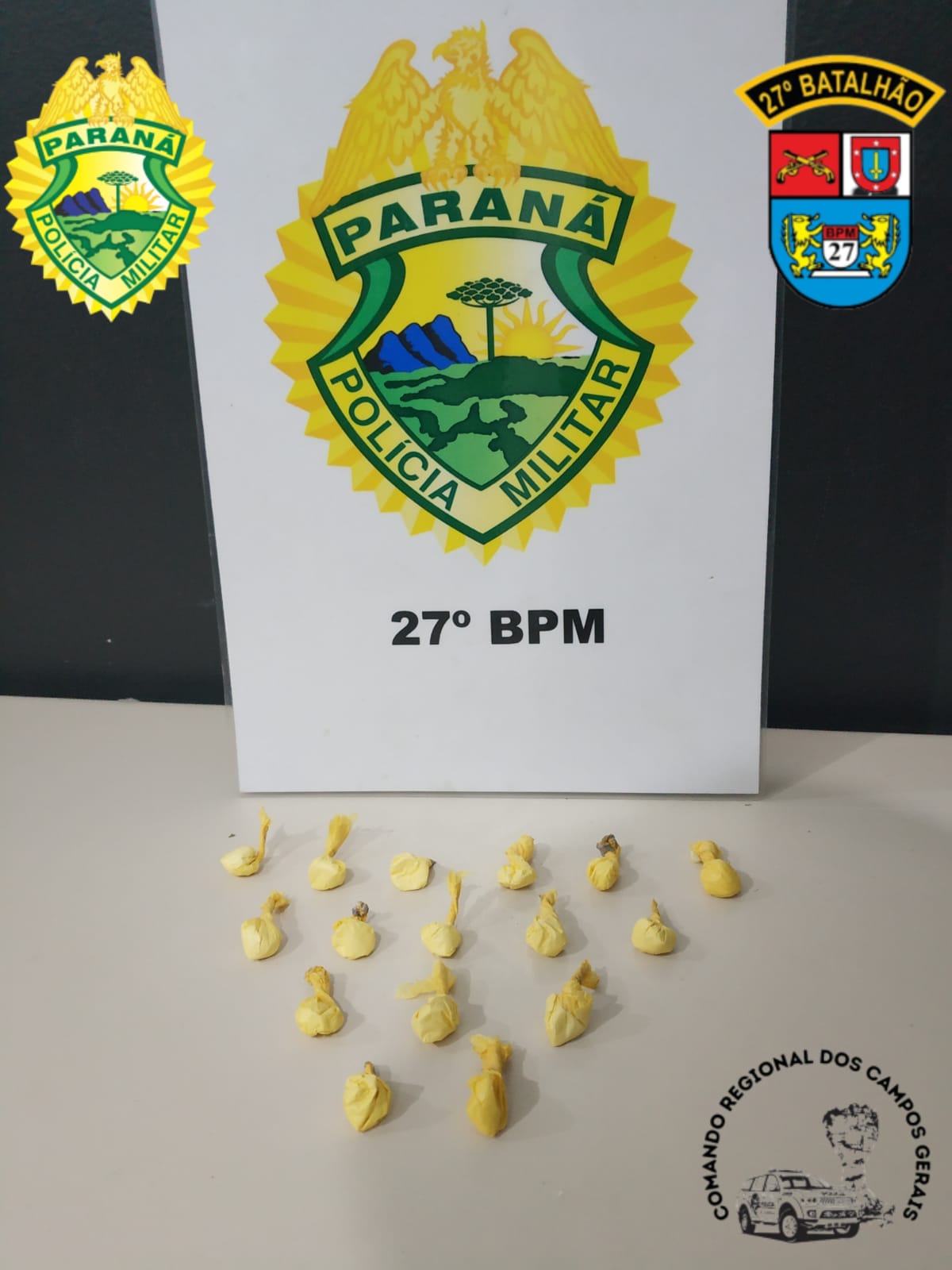 A equipe da Polícia Militar de Cruz Machado após denúncia, foi realizada averiguação em um imóvel na área central onde foram localizadas porções da substância análoga a maconha.