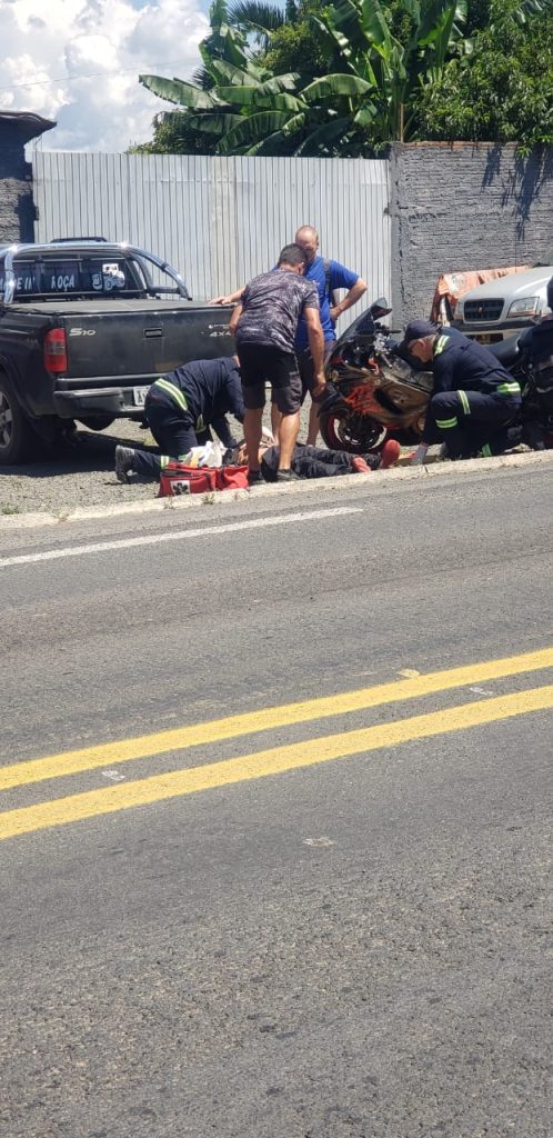 Ao chegarem ao local, os moradores encontraram o motociclista caído na lateral da pista, quase no trevo de acesso à cidade, reclamando de fortes dores na região da clavícula. A vítima foi orientada a permanecer deitada até a chegada do socorro.