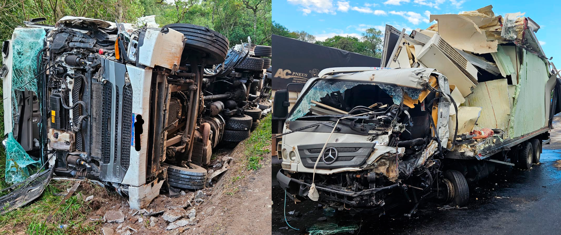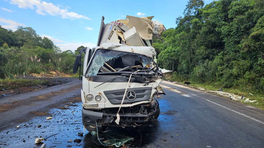 Colisão frontal entre caminhões deixa um motorista gravemente ferido na BR-153
