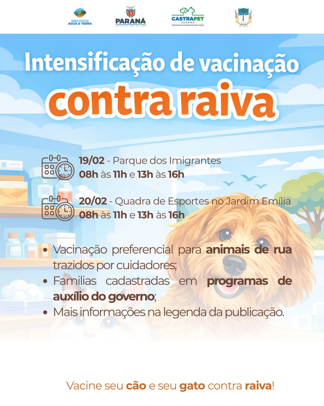 A campanha ocorre em parceria com o Governo do Paraná, por meio do Instituto Água e Terra, e do programa Castrapet Paraná, com apoio da administração municipal.