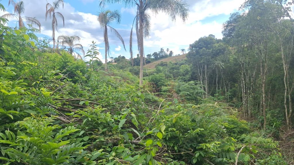No local, os policiais constataram dano à vegetação nativa em área de preservação permanente (APP), situada a menos de 30 metros da faixa marginal de um curso d’água natural. De acordo com o levantamento, houve corte de vegetação com o uso de motosserra em uma área de 0,16 hectares.
