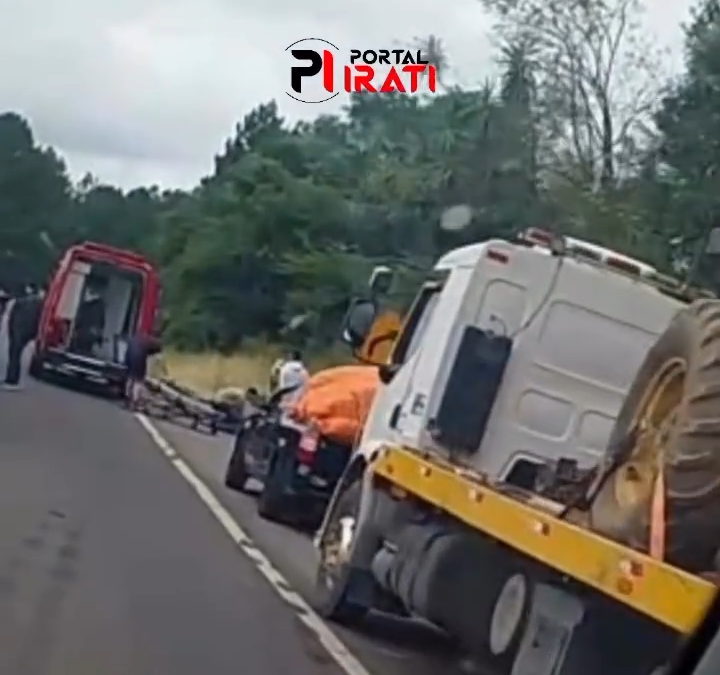 Acidente entre caminhão e motocicleta na BR-153 em Imbituva