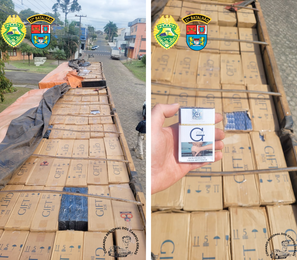 Polícia Militar e PRF apreendem carga milionária de cigarros contrabandeados em caminhão bitrem em União da Vitória