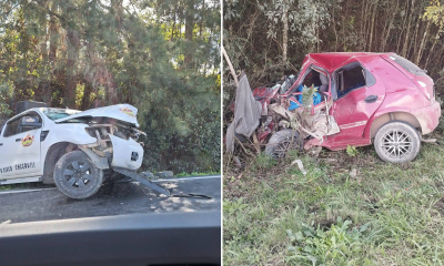 Grave acidente envolvendo um veículo Celta e uma caminhonete na localidade de Potinga, BR-153, região que faz divisa entre os municípios de Rebouças e Rio Azul...