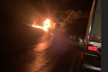 ATENÇÃO! Caminhão carregado com 20 mil litros de combustível que pegou fogo na BR-476 tem placas de Mallet