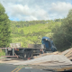 Carreta carregada de madeira tomba às margens da PR-447 em Cruz Machado
