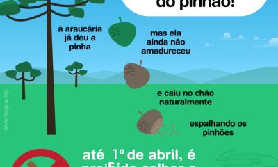 O Batalhão de Polícia Ambiental Força Verde alerta que a colheita, o transporte, a comercialização e o armazenamento do pinhão estão proibidos em todo o Estado...