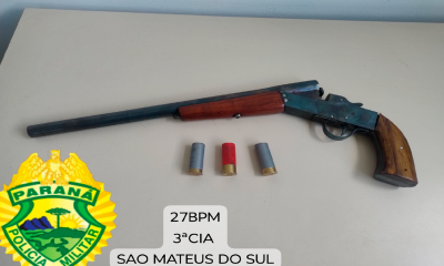 A equipe da Polícia Militar de São Mateus do Sul estava em patrulhamento quando abordou um carro e em busca veicular foi localizado uma arma de...
