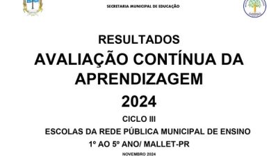 A aplicação da Avaliação Contínua da Aprendizagem para todos os alunos de 1º ao 5º ano do Ensino Fundamental, ocorreu entre os dias 16 a 30/10/2024....