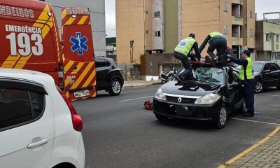 Um acidente de trânsito assustou quem passava pela rua Matos Costa, no centro de Porto União. Uma adolescente foi atropelada por um veículo Renault e com...