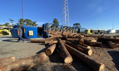 Bombeiros de São Mateus do Sul foram acionados na tarde desta segunda-feira (31), após uma carreta carregada com toras tombar em frente ao posto da Polícia...