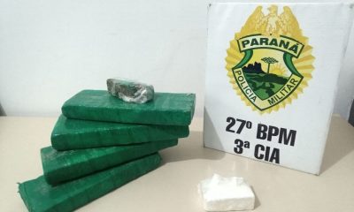 O veículo foi apreendido e o indivíduo preso, o qual estava em posse de cerca de 4,9kg de maconha e 250g de cocaína. Durante uma abordagem...