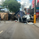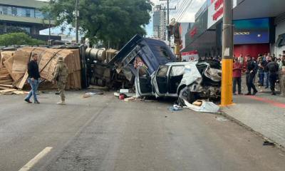 Uma carreta com placas de Bituruna, carregada com madeiras, se envolveu em um grave acidente na Avenida Fernando Machado, no bairro Líder, em Chapecó, no Oeste de...